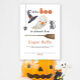 Featuring cute watercolor of baby ghost and Halloween aesthetics. A little boo is almost due! Halloween themed baby shower with watercolor ghost, black cat, witch's hat, magic mop ( broomstick ), spider hanging from a web. The little ghost is eating a lollipop.