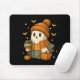 Cute Ghost Drinking Coffee Halloween Patchwork Gho Mouse Pad