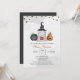 We are introducing our "Cute Ghost" Halloween Baby Shower Invitation! This enchanting invitation features an adorable little ghost wearing a witch's hat, alongside a Halloween pumpkin and cauldron. The background is adorned with grey and orange stars, creating a magical ambiance for your celebration. Perfect for adding a touch of whimsy and Halloween charm to your baby shower invitations.