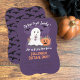 An adorable purple invitation for a kid friendly Halloween costume party featuring a cute little ghost on the front and a flying bats pattern on the back . Personalise it with your own info using the provided template . Look into our collection for matching party supplies .