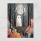 Add a touch of whimsy to your spooky season with this cute ghost haunted forest Halloween postcard—a charming way to celebrate autumn magic!
