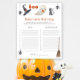 Featuring cute watercolor of baby ghost and Halloween aesthetics. A little boo is almost due! Halloween themed baby shower with watercolor ghost, black cat, witch's hat, magic mop ( broomstick ), spider hanging from a web. The little ghost is eating a lollipop.