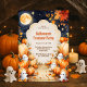 Invite little boos to a night of costumes and candy! This spooky-cute kids Halloween party invitation features smiling ghosts, stacked pumpkins, falling autumn leaves, and a glowing full moon on a starry sky. The soft watercolor look keeps it fun for children—festive, not scary. Perfect for neighbourhood bashes, classroom parties, trunk-or-treats, or an October birthday with a costume theme. Works for boys or girls; great for siblings & groups. Child-friendly design with ghosts & pumpkins.