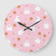 Cute Ghost & Pumpkin Pink Halloween Pattern Large Clock