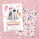 This Spooktacular Kids Halloween Party design features a cute dancing ghost and pink and orange bats with balloons and stars. You can customise all of the text to suit your event. On the back of the design is a pattern of ghosts, florals, moons on a pink background. See the whole matching collection.
