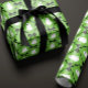 Cute Ghosts and Black Bows on Green Halloween Wrapping Paper