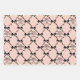 This set of three gift wrap sheets is sweet and a little bit spooky with three different but coordinating Halloween themed patterns. Happy little ghosts float on a soft blush pink rose background among a diamond pattern of black bows that give a girly gothic coquette vibe. The second sheet of wrap is rose colour with the same bow pattern and personalised "Happy Halloween" text with the name of the gift giver printed below. The third sheet of paper is black with the same little ghosts in a small repeat pattern. While Halloween isn't a huge gifting holiday, there are lots of reasons to be generous and on theme for October Little Boo baby showers and birthday parties.