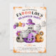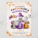 Get ready for a frightfully fun Halloween celebration with this charming party invitation adorned with adorable ghosts and playful pumpkins. One of the cheerful ghosts is seen holding colourful balloons, while another sports a whimsical purple witch hat and proudly displays the word "BOO!" The invitation reads, "You are invited to a FABOOLOUS HALLOWEEN Party," setting the perfect tone for a night of spooky festivities. The entire design is enhanced by a grunge texture on white background that adds a touch of eerie elegance, extending even to the back of the invitation, making it a delightful keepsake for your guests..