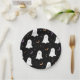 Cute ghosts Halloween paper plate in black background with scattered orange bats, purple moons and stars. Perfect for Halloween themed party decoration.