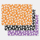 A gathering of not so spooky ghosts swirl across these sheets of orange, black and purple gift wrap giving your gift giving a fun pop of phantasmic delight for the month of October and the Halloween season.
