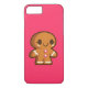 A cute illustration of a brown gingerbread man cookie. Soft pink buttons and squiggly frosting accents on his arms and legs. A festive and fun theme for the christmas holiday season.