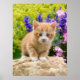 A lovely kitten on a rock in a flowery garden. A cute young redtabby baby cat with wonderful blue eyes, photo taken by Katho Menden. This photographic print on poster paper is a gift idea for cat and pet lovers. http://www.zazzle.com/kathom_photo