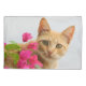 A curious red tabby kitten is watching you, peering from behind a flowering bougainvilla with prying eyes, portrait. This cosy pillow case is a gift idea for cat and pet lovers. A cute ginger kitty portrait photo taken by Katho Menden. http://www.zazzle.com/kathom_photo