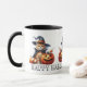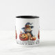 Meow! Add Whimsical Charm to your Festive Holiday Table with this Cute Cat Halloween Mug! The Artwork features a Cute Tabby Cat sporting a Witches Costume. His Jack-o-lantern has a Cute Little Kitten peeking out of the top of the Pumpkin. The verse says, "Happy Halloween Jennifer!." Personalise this Cat Mug by adding your Loved Ones Name, or Your Own Phrase!