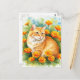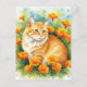 Cute Ginger Cat with Marigold Summer Flower Postcard for Postcrossing