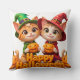 Cute Ginger Cats in Witch Hats Halloween Pumpkins Cushion