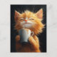 An adorable happy ginger cat with a mug of coffee fantasy art