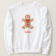 This festive sweatshirt is perfect for family shirts for holiday pictures. The shirt features a gingerbread with red bowtie graphic. It can be personalised with any name.