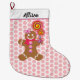 Cute Gingerbread Girl Pink Polka Dots Personalised Large Christmas Stocking