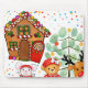 Whimsical Christmas mousepad featuring a candy-trimmed gingerbread house, a simple decorated tree, a smiling teddy bear, a cheerful little mouse, and a reindeer in a bright festive scene with colorful confetti dots. Warm red, green, gold, and pastel tones give this playful holiday design a sweet storybook look for seasonal desk decor.