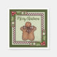 This holiday Merry Christmas sticker design features a cute gingerbread man and a red and white chequered border with holly accents.