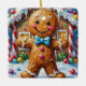 Cute Gingerbread Man Cheerful Christmas Cookie Art Ceramic Ornament