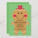 Start your winter holiday party off right with our cute cookie exchange invitation featuring a cute gingerbread man wearing a red hat set on a green gingham plaid background. ©Pink Design