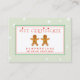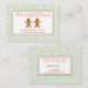 NewParkLane - Business gift certificate, featuring two cute gingerbread men, against a sage green snowy background. The texts are in a fun handwritten font in red with cute little hearts as dots on the letter i.