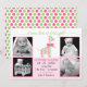 © 2012 Socialite Designs. Whimsical baby girl birth announcement with a green and pink polka-dot giraffe and pink bow design. A wonderful way to announce the birth of a newborn baby girl to your family and friends. Also makes a wonderful keepsake. Just change out the template photos and text with your own.