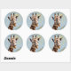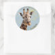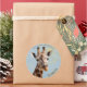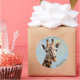 For giraffe lovers, this children's book label features a cute giraffe with a jaunty head tilt on a blue background with gold/yellow accent graphics that could represent the sun or flowers - customise with child's name - by katz_d_zynes