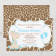 Cute Giraffe Boy Blue Baby Shower Invitation