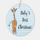 Cute giraffe drawing, safari animals, blue stripes ceramic tree decoration