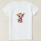 A cute, cartoon-style baby giraffe with large, expressive eyes and a joyful smile. It stands in a playful pose, the overall mood is cheerful and whimsical, perfect for a children's gifts.