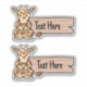 A cute sticker featuring a giraffe. A great way to label your personal items. Change the text to personalize.