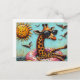 Cute Giraffe on Doughnut Floatation Device Birds F Postcard