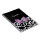 A cute black and white giraffe print notebook with a girly lavender purple ribbon tied into a feminine bow. Personalise this pretty animal print design by adding your name. Flat printed image, not actual bow.