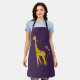 Cute giraffe apron with a cartoon giraffe nibbling on a light purple flower and holding some flowers with its tail while roller skating, on customizable purple background. This cute giraffe design will appeal to girls who love giraffes and cute cartoon illustrations, as well as the cheerful yellow color. It will make a great gift for a skater girl, too.