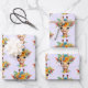 Wrapping paper sheets with a whimsical watercolor illustration featuring a giraffe face wearing a pretty spring floral crown. Colourful and cute.