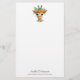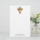 Stationery paper with a whimsical watercolor illustration featuring a giraffe face wearing a pretty spring floral crown. Colourful and cute.