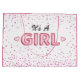 The words, it's a girl, pop against a white background and appears to be three dimensional. There are two small hearts on either side of the word girl and pretty scattered pink glitter around it which appears to sparkle and shine. These are ideal for drive-by, virtual and normal baby shower or newborn events for little girls.