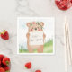 Add an adorable accent to the celebration with these rustic woodland napkins, showcasing a sweet watercolor teddy bear holding a personalised sign. The soft pastel greenery and gentle forest animal vibe create a charming, playful atmosphere that's perfect for a teddy bears picnic or baby shower party. This cute and simple design suits both "it's a boy" or "it's a girl" themes, bringing warmth and delight to any newborn occasion.