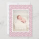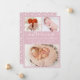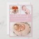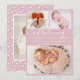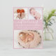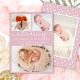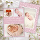 Baby Girl Dusty Pink Birth Announcement 3 Photo Collage Cards. Elegant birth announcement featuring 3 of your favourite baby photos on front, with a pretty hand lettered text „introducing” in a swirly calligraphy script with swash-tails font on light rose or dusty pink colour background. Add your baby's name on the front and birth stats. At the back side one vertical baby photo on white dots blush pink background. You can easily personalise it.
