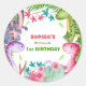 Cute Girl Dinosaur 1st Birthday Party Classic Round Sticker