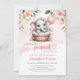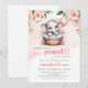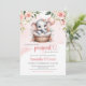 Cute girl elephant in floral basket and balloon invitation