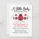 A little lady is turning one! A cute red and black ladybug birthday party invitation. The back of the invitation is decorated with a pretty red, black and white floral pattern. Personalise it for your girls 1st birthday party. Designed for you by Blackberry Boulevard.