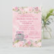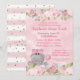 Cute Girl Hippo Pink Floral Baby Shower Invitation