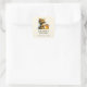 Baby Shower thank you stickers with a cute image. A girl in a crocheted bee costume with a bee by her side. Watching over a jar of honey.
