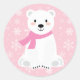 Cute Girl Polar Bear Winter Snowflake Pink Classic Round Sticker