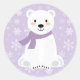 Cute Girl Polar Bear Winter Snowflake Purple Classic Round Sticker