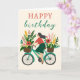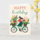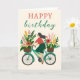 Cute Girl Riding Bicycle w Flowers Happy Birthday Card
